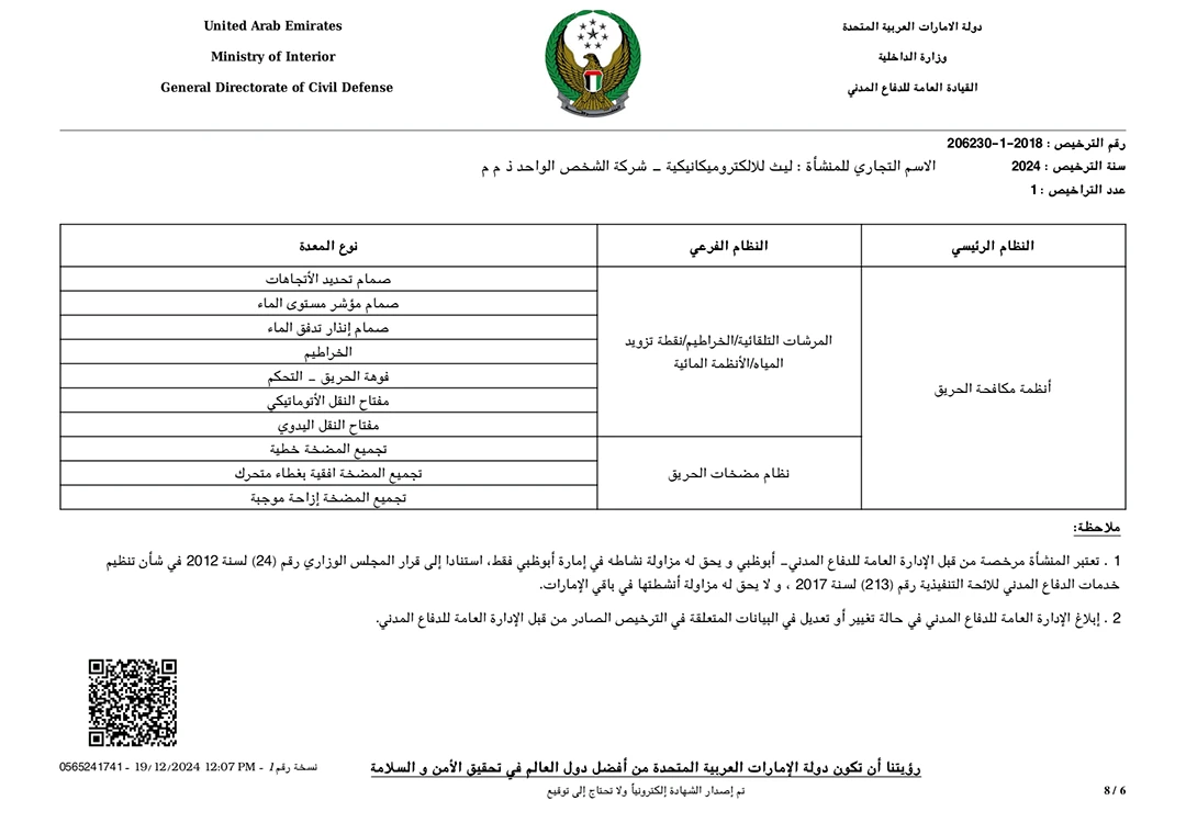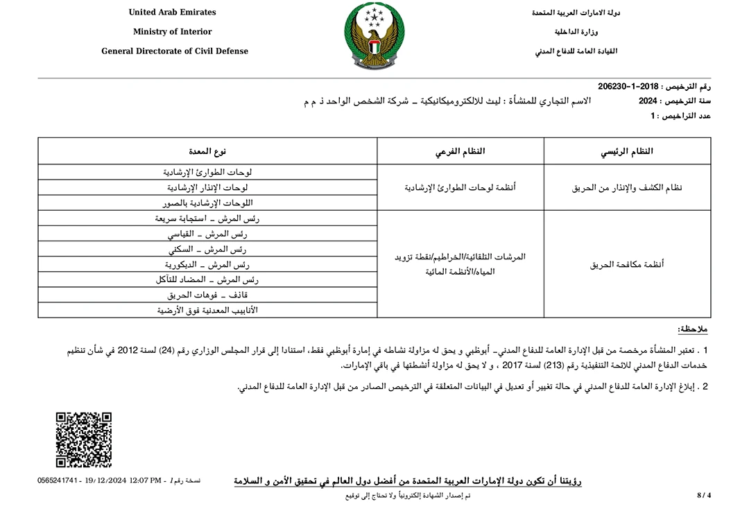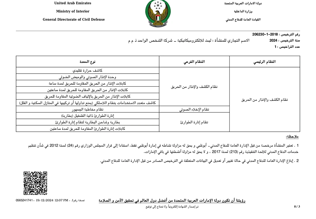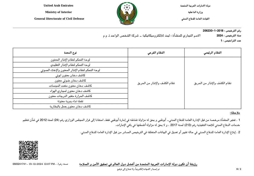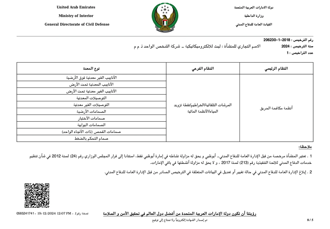 - Certified for a Facility Management System covering installation, inspection, testing for electro-mechanical activities (commercial, onshore, offshore), security & surveillance installation and maintenance, and IT networking services.